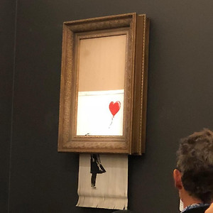 뱅크시가 또 일을 내버렸습니다. 영국 소더비 경매장에서 뱅크시 본인의 그림이 백만 파운드(정확히는 1,042,000 파운드 / 약 15억)에 작품이 낙찰되며 경매 낙찰을 알리는 의사봉 소리가 나는 것과 동시에 벽에 걸려있던 해당 작품을 파쇄하는 퍼포먼스를 터트렸는데요. 미술 경매 역사상 비슷한 사건조차 벌어진 적이 없어, 소더비 대표가 직접 '미술 경매 역사의 어떤 흐름으로 받아들여야 할지를 고민하고 있다.'는 말을 할 정도의 반향이 큰 상황이 펼쳐지고 있습니다. '정체가 밝혀지지 않은 어둠의 예술가’라는 타이틀과 너무나 잘 맞는 행보인데요. 작품의 출처부터 시작해서 이 퍼포먼스까지 본인의 메세지를 확실하게 날릴 줄 아는 대단한 작가라는 생각과 표현 외에는 아무런 생각이 나지 않을 정도로 대단한 예술가라..